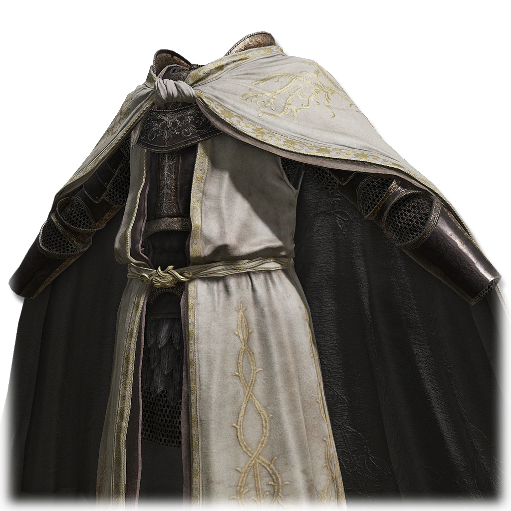 Embroidered with a golden crossed-tree motif, the chalk white cloak and surcoat symbolize the honor of the Needle Knights.