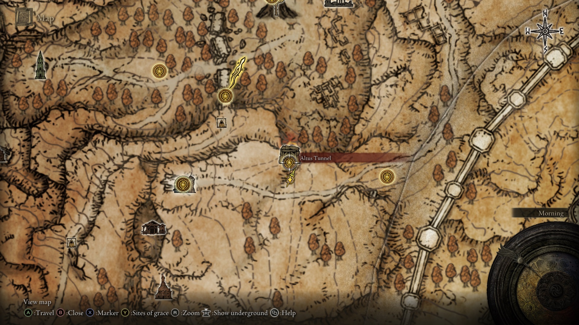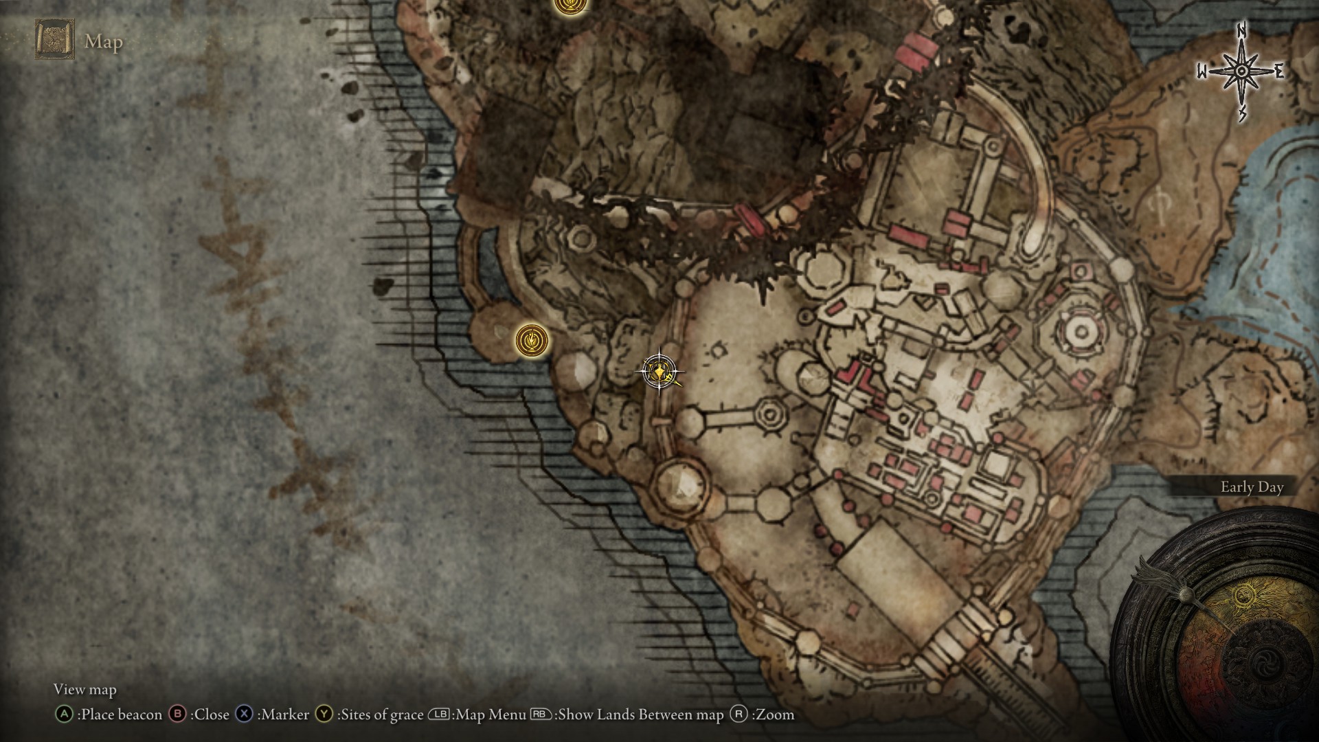 Enir Ilim - From the First Rise site of grace, head out of the lower south-west exit. Go up the stairs and head south-west again. At the back of the room, jump over the railing around the tree to find the item.