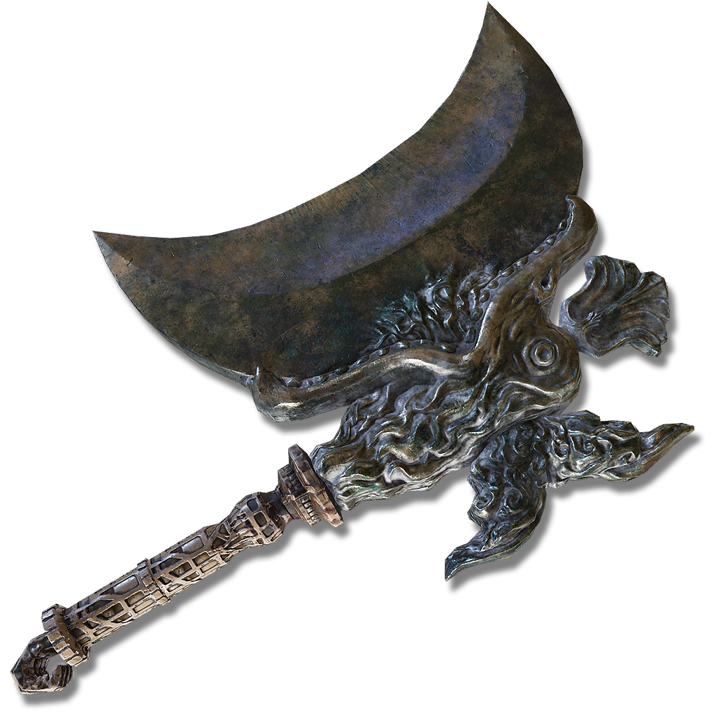 Hatchet used in ancient sacrificial rite. A Deathbird is depicted as a malevolent deity.