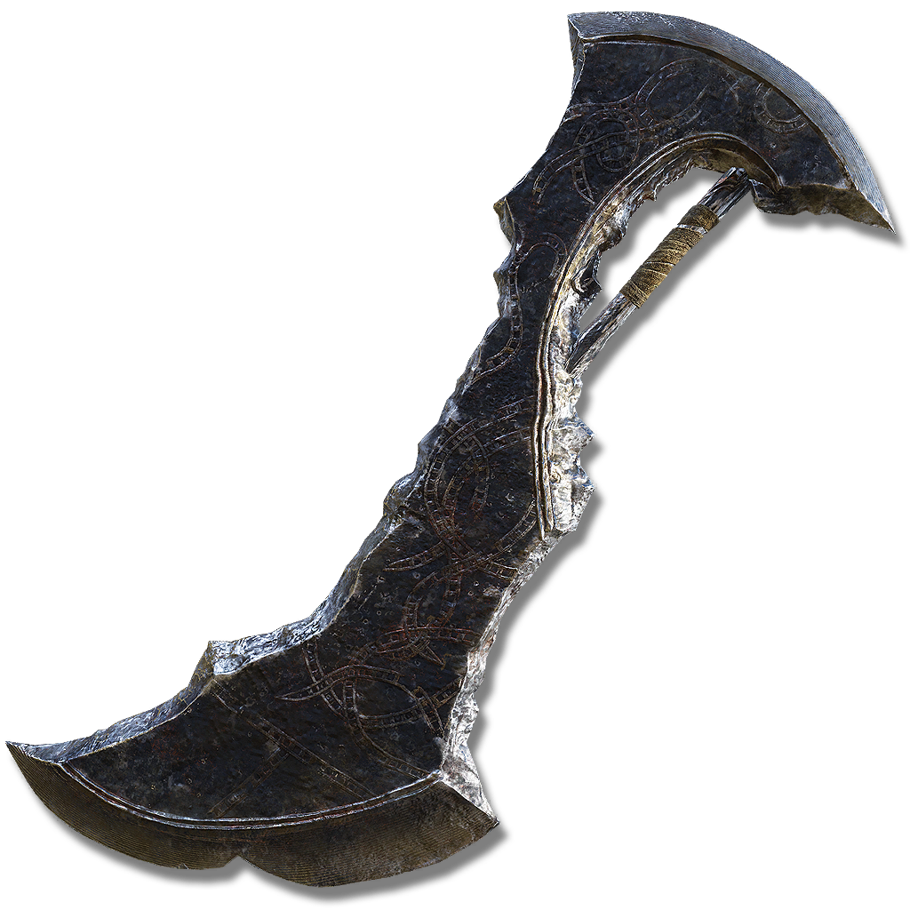 Curved greatsword of colossal size forged of dull iron and wielded by the beastmen of Farum Azula.